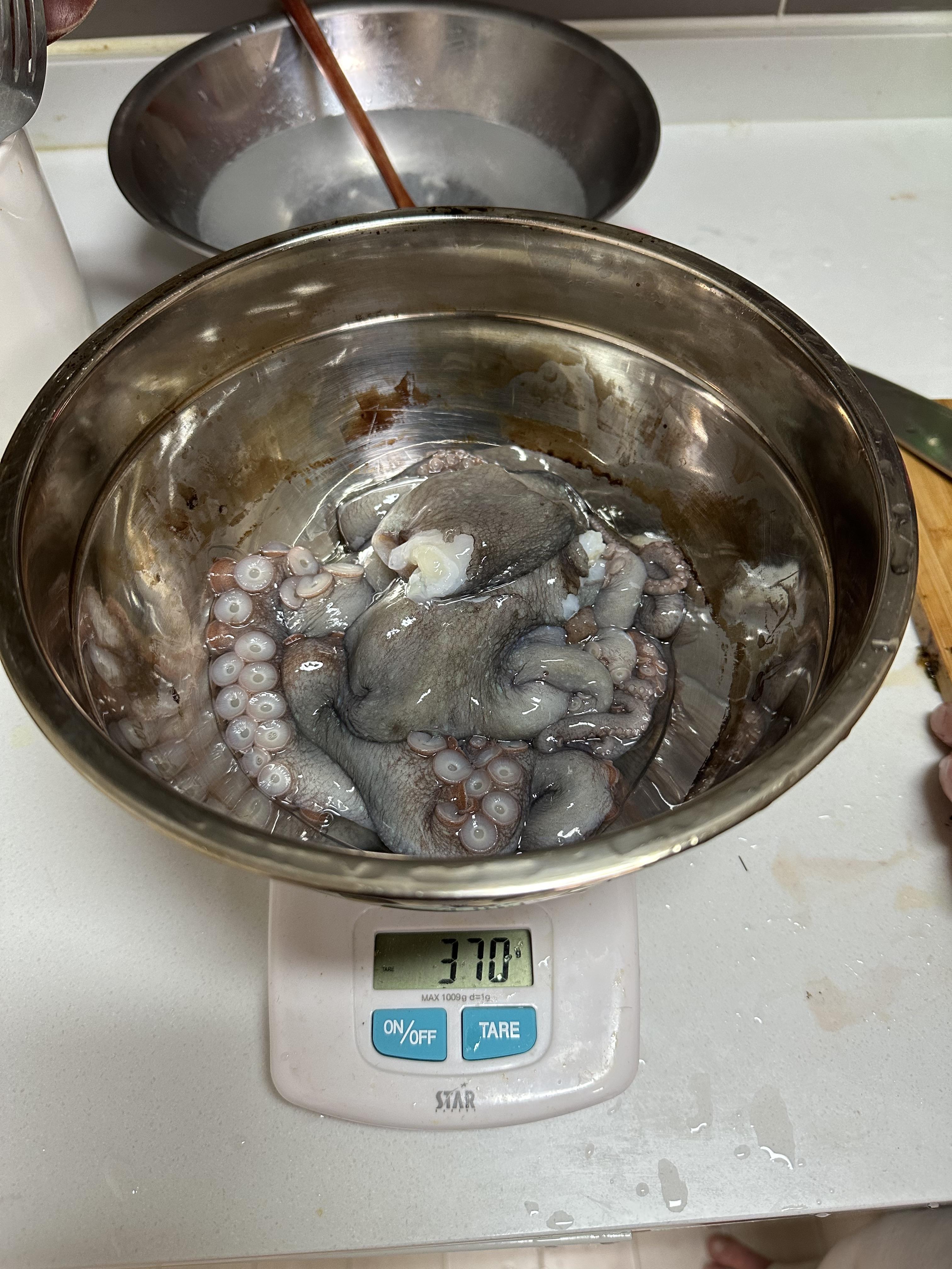 낙지 손질 후 무게를 재어보니 내장을 제거한 무게가 370g